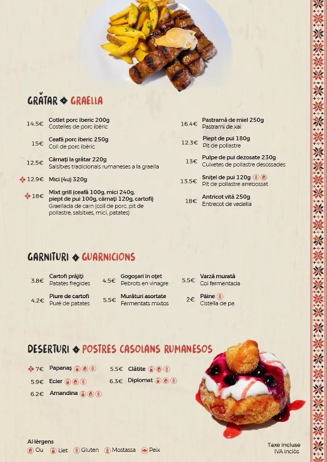 Nuestra Carta Les presentamos nuestra carta preparada especialmente para tapear, compartir raciones, comer y cenar en nuestro restaurante. ESP CAT ENG Carta esp Menu eng Menu cat